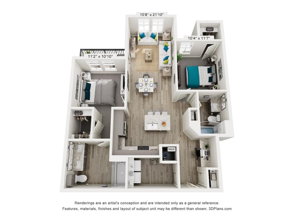 Unit Type2 Bed / 2 BathFloor Area1,290 sq. ft.AvailableTodayStarting at$1,949 / mo